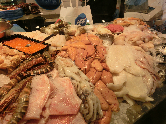 The tagline on the Torvehallerne website – Its not a supermarket, its a super market – sums up this wonderful covered market, close to Nørreport station, perfectly. I remember a few years ago watching the building of the market hoping for great things. Just before we left Copenhagen in September 2011 my son and I visited the market on its opening day. I loved it right from the beginning with the amazing selection of produce both from Denmark and the rest of the world. The stall holders are friendly and knowledgeable, which is an important combination of a market.