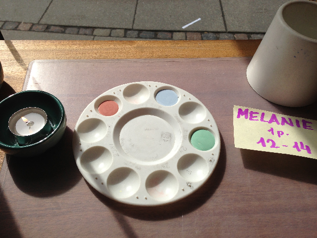 The set up is simple but very enjoyable. I usually book a space and when you arrive your work space is set up with everything you need – brushes, water, cloth and empty paint palette, and of course, as this is Denmark, a candle.