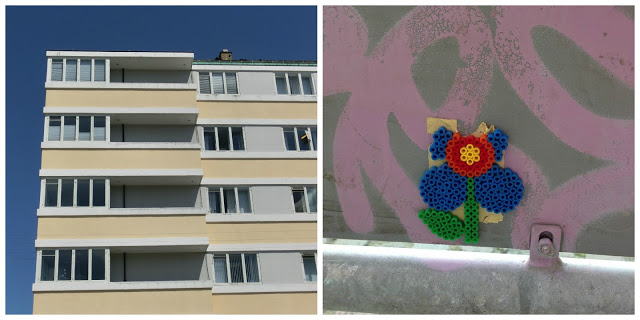 Beautiful lines of the Lagkagehus, home of the first Lagkagehuset bakery, and a bit of Hama bead bombing.