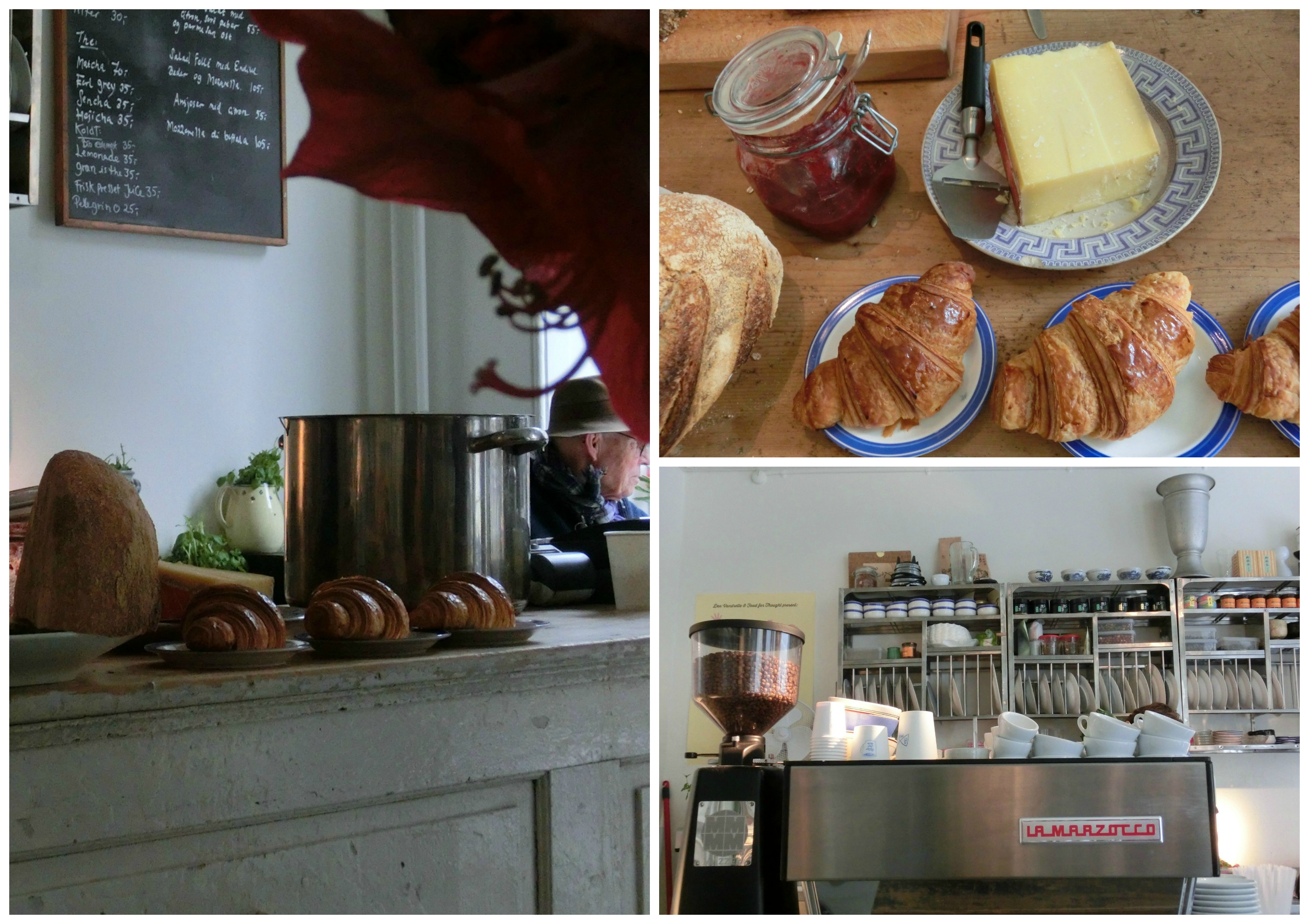 After several failed attempts to get a seat for lunch in Atelier September on Gothersgade, I was lucky enough to be passing in time for an early lunch and to catch this popular cafe almost empty (it was certainly filling up when I left though). It is a small cafe with two long scrubbed wooden tables and a few window seats so the dining experience is very cosy. Whilst I was there they were preparing a huge vat of cucumber relish as well as making the salad for the day.