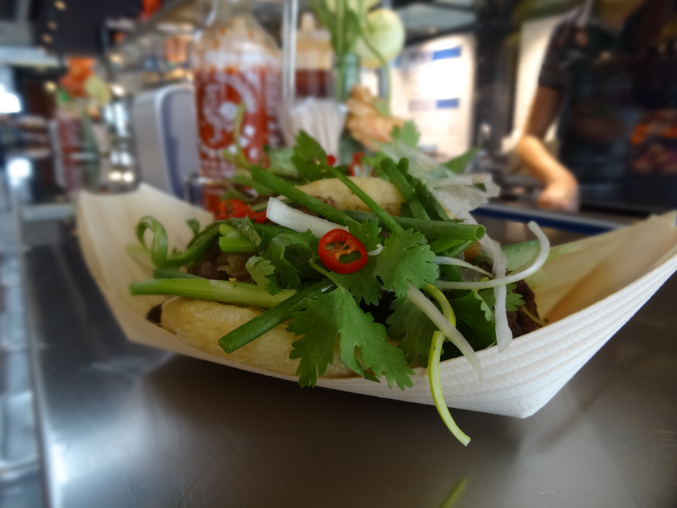 First up is a new stand called Fresh Market. I have mixed feelings about this stand as it used to be a florist run by a lovely friendly man selling amazing flowers. Sadly this stall closed down but happily a specialist greengrocer has opened in its place. They sell fresh juices and lots of exotic fruit and Italian vegetables, which are not in direct competition with the market stalls outside, which I think is a positive move – both for the businesses and also consumers. DSC00714The little treasures I found on this stand were little boxes of fresh edible flowers. It is the first time I have ever seen these for sale and they were so pretty, perfect for those summer birthday cakes or special homemade ice lollies. DSC00713Next is one of the older stands but still worth a mention. Gartner Christen Olsen, a fourth generation herb gardener, sells herbs and plants directly from his farm. This stall is the go-to place for fresh herbs.DSC00720The treasures on this stand at the moment are tomato, chilli, strawberry and pepper plants for sale. They looked well established and healthy, and a great addition to a sunny yard or balcony. The other discovery on this stand is they now have a farm shop open on Thursdays, Fridays and Saturdays in Ishøj (Torlundevej 124, 2635 Ishøj). DSC00716The next place is a new stand and a new concept for the market. Homemate prepare fresh meals from produce from the market and meat from their parent stand, Cleavers (located opposite). Each week they have a small selection of carefully prepared fresh meals that you just have to stick in the oven to cook. I was very excited by the pig’s cheeks dish. The menu changes weekly and you can see it on their Facebook page.DSC00722The last two are take away places, perfect to eat outside on the cosy tables in the summer months. As a Brit I do miss decent fish and chips and Fiskerikajen’s certainly hit the spot. Be warned the portions are generous but they do a child’s size portion too. The prawn salad sandwich is also worth a try.DSC00723Finally another new stand is Bánh Mì Daily, a Vietnamese takeaway place from the LêLê chain selling bánh mì, soft buns and salads. I will be honest and say that is place isn’t a patch on District Tonkin in my opinion and is certainly not as spicy or tasty, however it is worth trying if you fancy something a little different for your lunch (and don’t mind it not being spicy).DSC00702 DSC00715Of course there is so much more in both the market halls and outside to discover, especially on Wednesdays over the summer months when there is an extra market outside for small producers. Check the event calendar for more information.