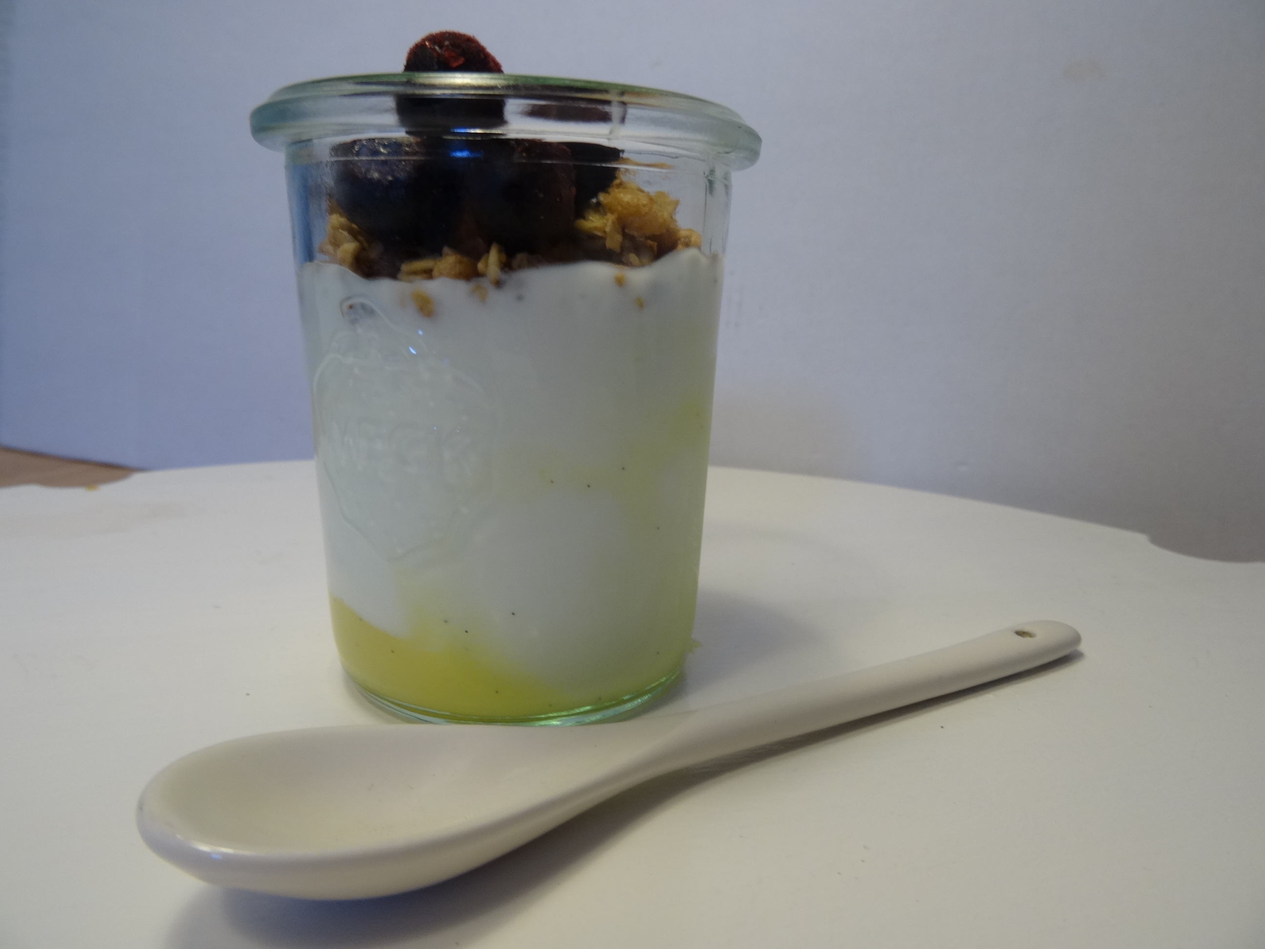A38 on the other hand is a runnier, more sharp fermented dairy product with acidophilus culture and has been around in Denmark since 1920. You can buy it with various levels of fat content and also with flavours but I plumped for the plain low fat version. I prepared it in the same way as the skyr above and popped a few blueberries on the top.