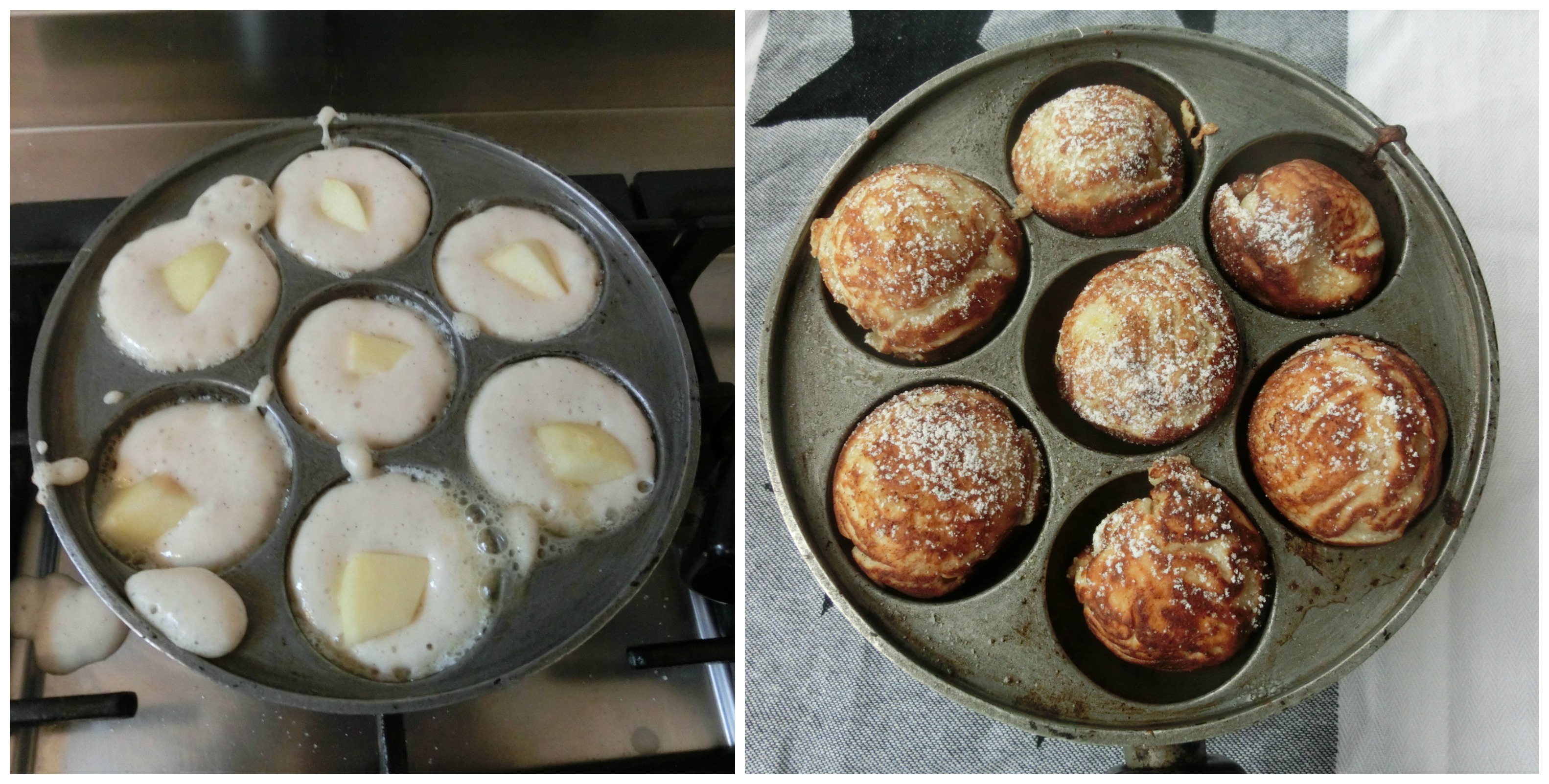 I love æbleskiver! Interestingly, we have an old family recipe which makes something very similar, it’s more like a mini Yorkshire pudding but with apple in the middle and a little powdered shugar on top – served as dessert when we’d been good! My Great Grandmother (from Lincolnshire) used to make them. I’ve often wondered if the two dishes were somehow related. I think food, like language can show many common relationships across countries.